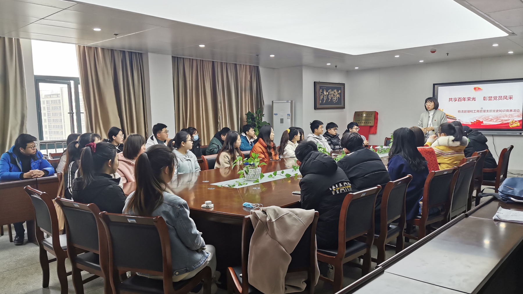 为纪念中国共产党成立一百周年,回顾党的光辉历程,加强党章等党的基础知识的学习,提高党员党性修养。115日,以共享百年荣光,彰显党员风采为主题的知识竞赛在C818举办,物流管理和工商管理学生党支部40余名学生党员参加活动,竞赛由支部书记赵妍老师主持。